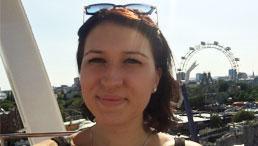 Katharina mit dem Wahrzeichen Wiens im Hintergrund: das Wiener Riesenrad (© Katharina Alektorov).